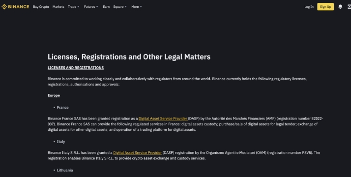 Binance operates in several European countries (France, Italy, Lithuania, Spain, Poland, and Sweden) and complies with the EU regulatory framework. This gives it access to a large market with relatively stable and predictable digital asset regulations.