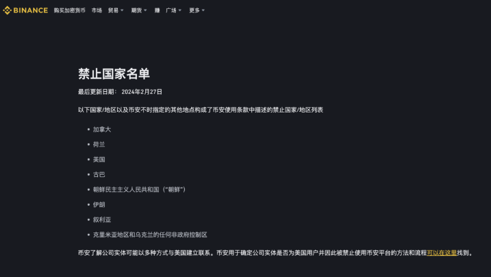 There is a positive list and there is a negative list. Binance’s official website also lists its banned countries.