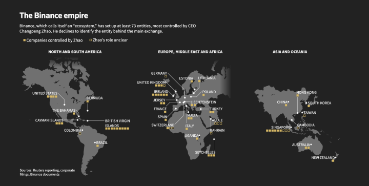 Six years later, Binance has established at least 6 companies around the world, which Reuters calls: the Binance Empire.